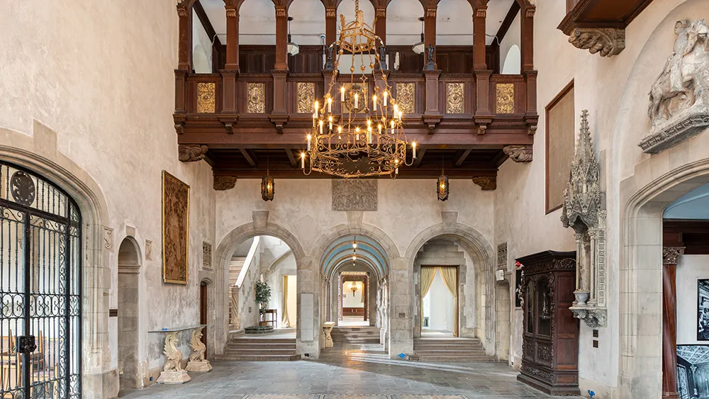 Entre sus joyas se encuentran vidrieras góticas del siglo XVI, una capilla privada utilizada por la familia Bradley y múltiples estancias traídas desde Europa.