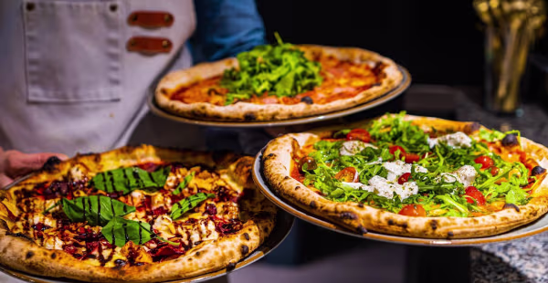 Las pizzas, elaboradas con masa madre de larga fermentación y horneadas a alta temperatura, se mueven entre la tradición y la sorpresa: combinaciones con trufa, mortadela y pistacho, ‘nduja picante o versiones más gourmet que actualizan el concepto de pizzería. Por otra parte, en el apartado de pasta conviven clásicos como la carbonara romana con propuestas más creativas, en las que el picante, los matices ahumados y las salsas untuosas tienen un papel protagonista.